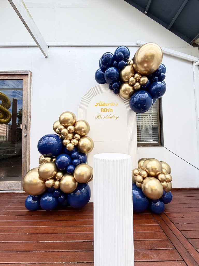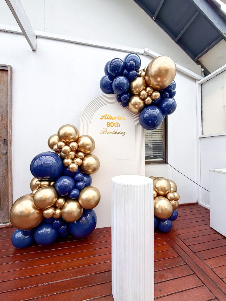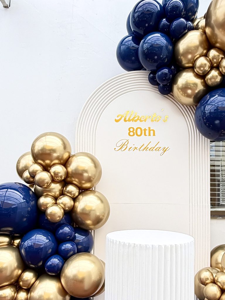 When sophistication meets celebration, the result is this beautifully refined navy blue and gold balloon installation. Designed around a custom arch backdrop, the setup captures a perfect balance between boldness and elegance—ideal for modern birthday celebrations that call for something polished yet eye-catching.