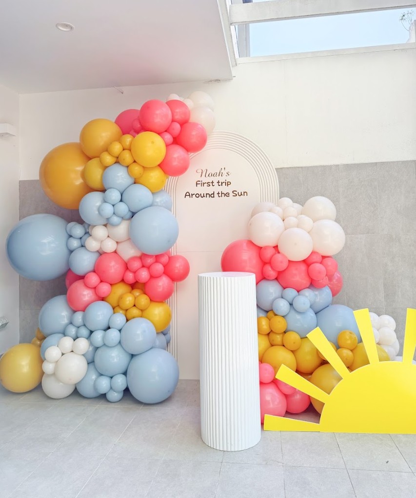 Custom‑designed balloon backdrops and premium party decorations