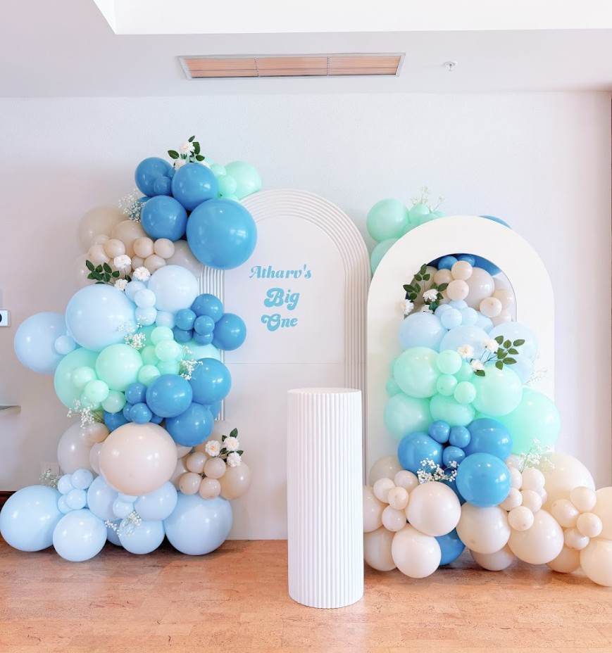 Balloon arches for entrances, cake tables, and photo moments