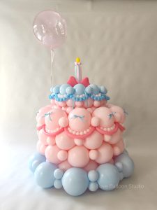 Instead of using a traditional cake as decoration, we created a fully sculptural version using balloons. By carefully layering different sizes and colours, the structure achieves both volume and softness, while still maintaining a clean and balanced silhouette.